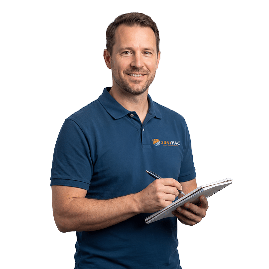 La poussière et le pollen réduisent la production de 5 à 15% par an. Sunypac assure le nettoyage et le diagnostic technique pour garantir votre rendement.